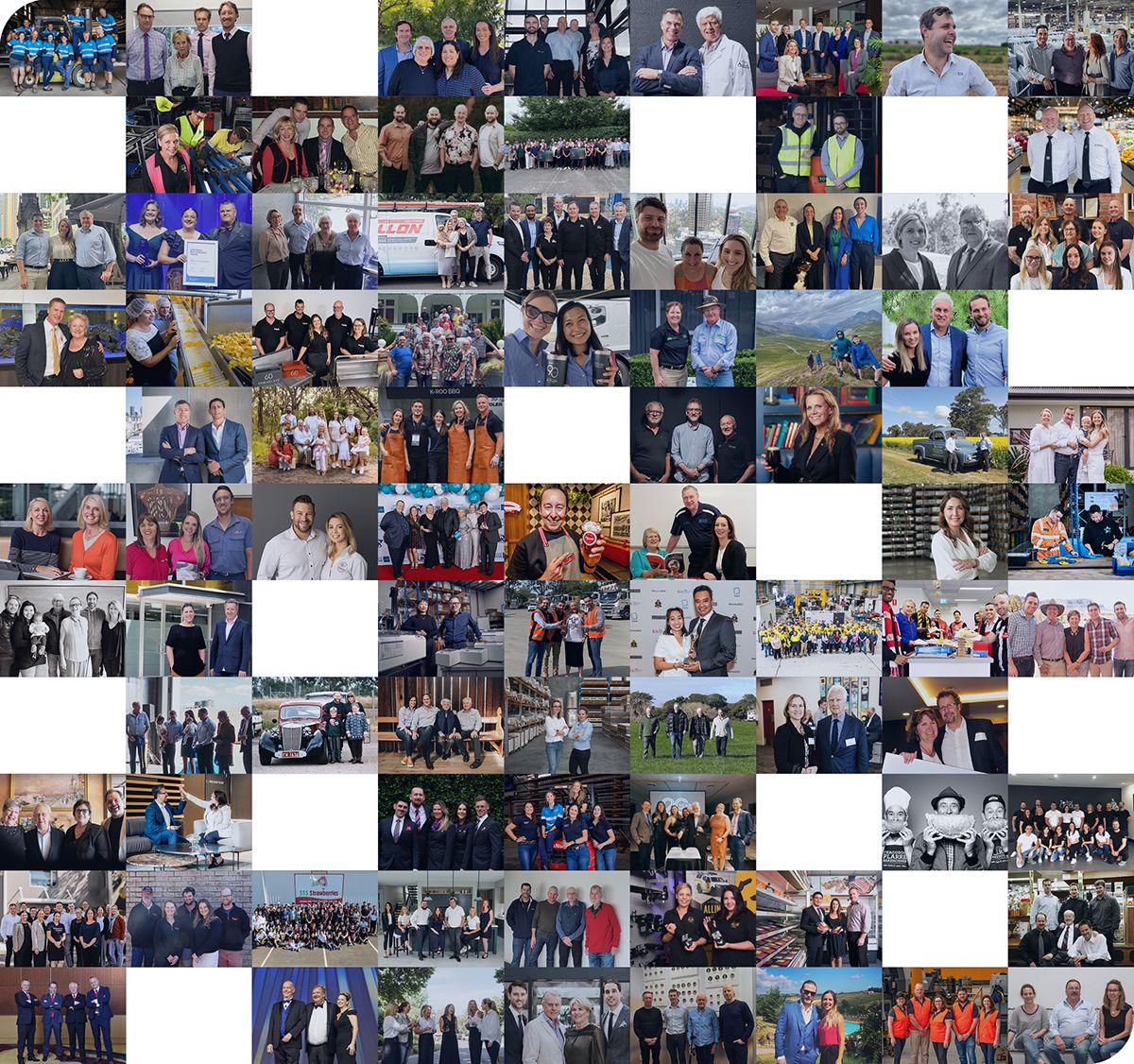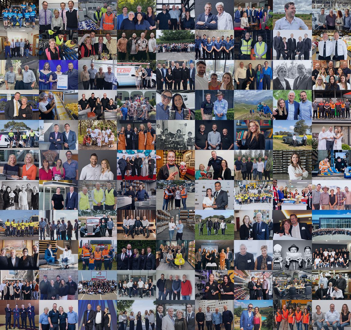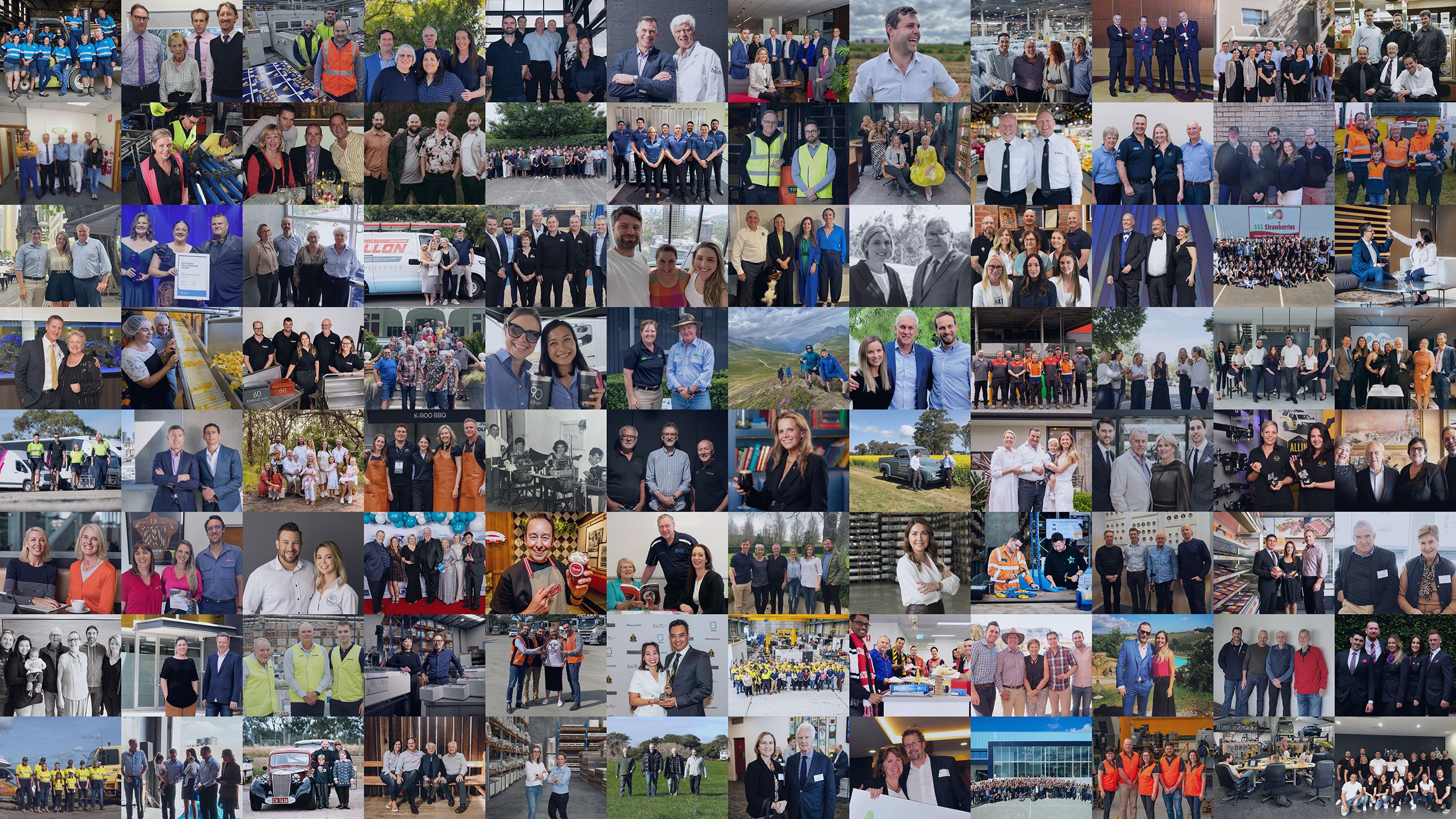 Still image featuring 96 family businesses from Australia and New Zealand of all shapes and sizes, and across all industries.