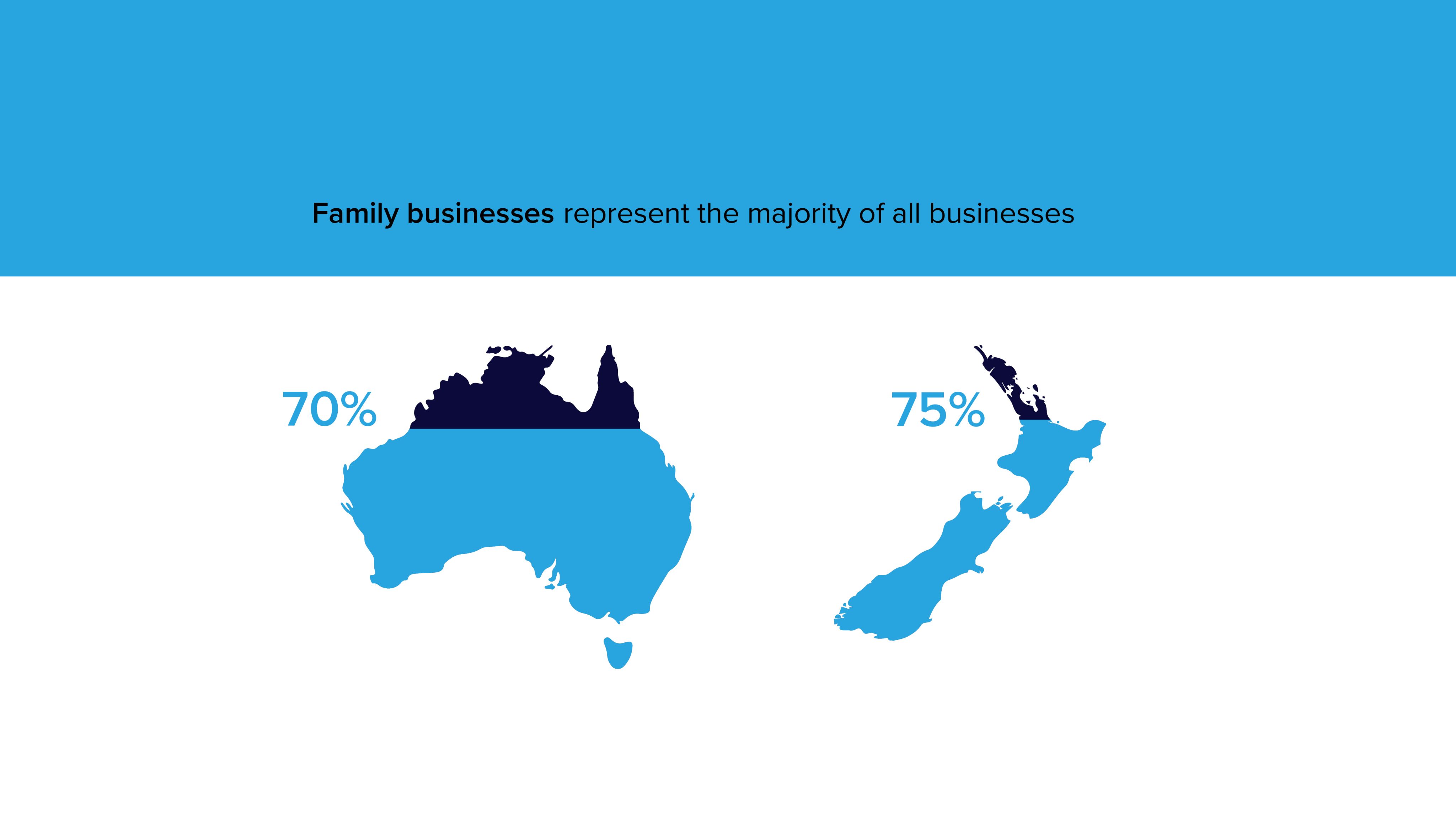 This image visualises a key family business statistic, 70% of businesses are family-owned, starting from the top of Australia, and moving down to the relevant percentage.
