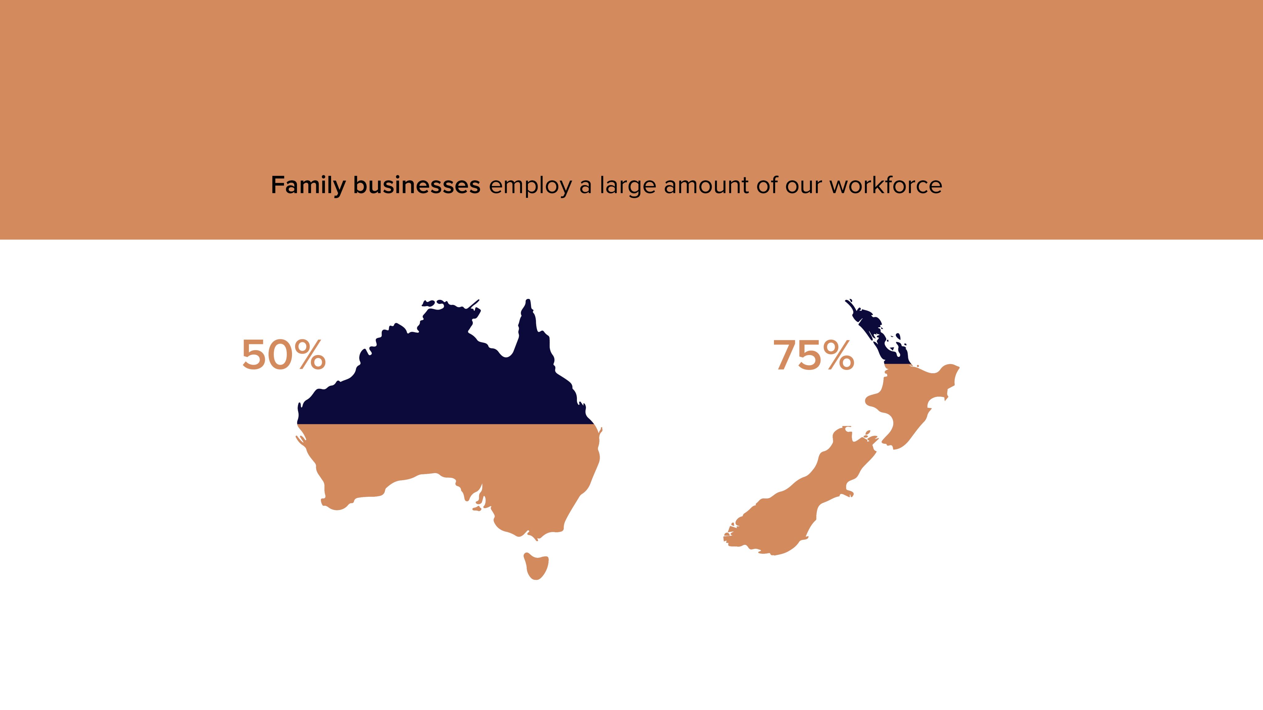 This image visualises a key family business statistic, 50% of our workforce are employed by family businesses, starting from the top of Australia, and moving down to the relevant percentage.